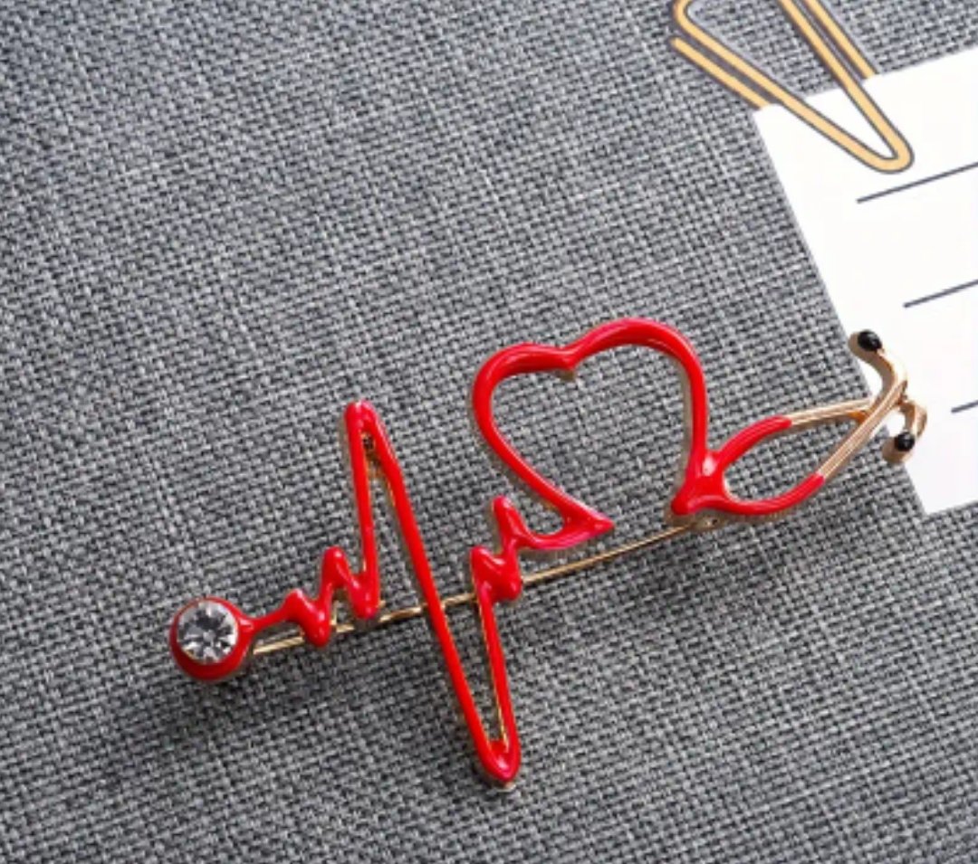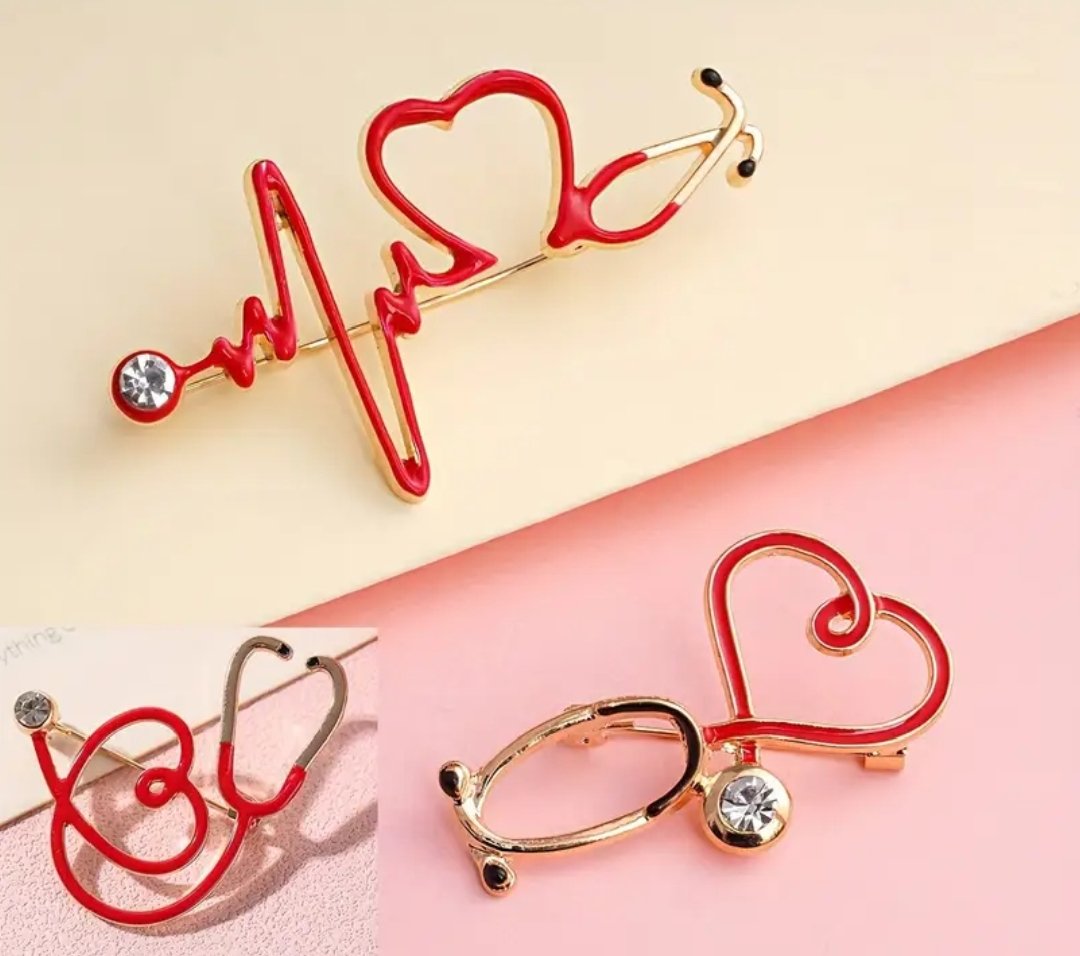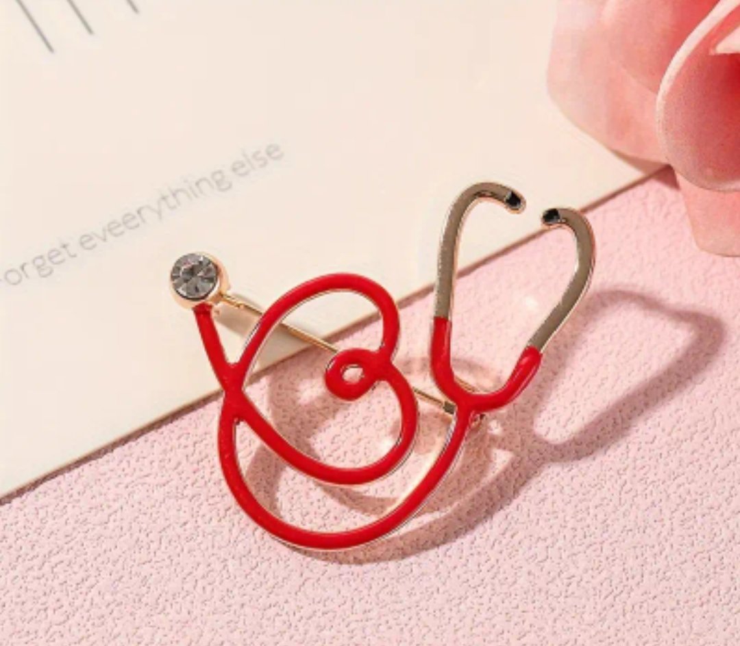 Shaped like a stethoscope forming the letter “B” or a looping heart, this pin is a unique take on medical pride and personal flair. Add it to your coat, scrub cap, or tote for an instant charm upgrade.