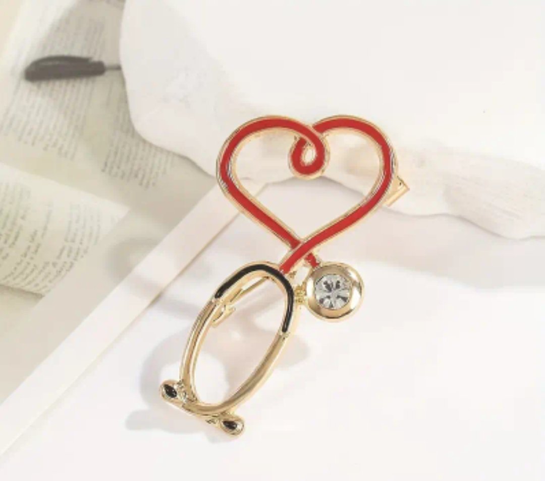 Delicate yet bold, this pin combines a stethoscope with a heart-shaped loop, celebrating both care and craft. Ideal for nurses, doctors, and healthcare workers who lead with love.
