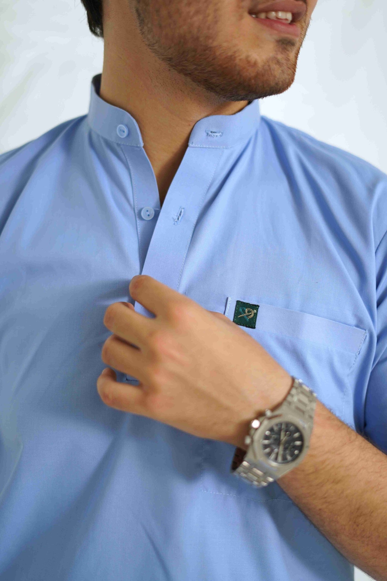 Be the first to review “Men’s Premium Sky Blue Scrub Set – Mandarin Neck”